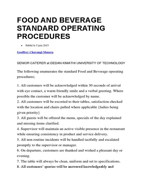 ECR - Free PDF standard-operating-procedure-templates-catering PDF Gutenberg